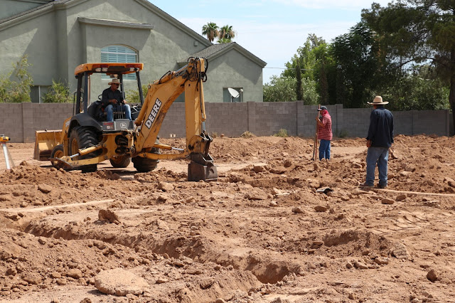 Digging out the house edges for footings. Royelio (in blue) is in charge of the concrete work.